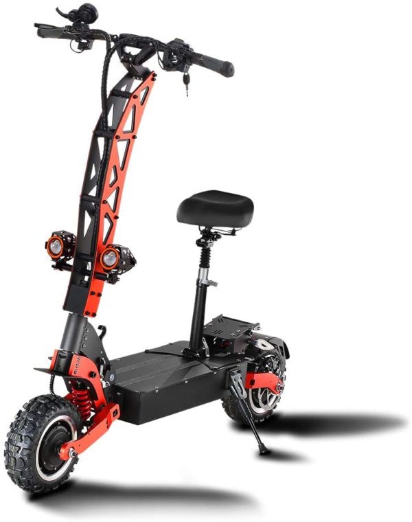 This is a Gunai electric scooter which has a 5600w high-speed, brushless motor with a 60v 30Ah lithium battery. It has a driving range of about 100-120km at a speed of up to 80km/h. It has an off road tyre which has good grip and explosion proof with hood shock absorption. There is extra shock-absorbing too which makes it comfortable to ride. It also folds up really easily which means that it can be stored in the home, office or boot of the car or it can be easily carried on to public transport. This means that it can be a practical transport means for all sorts of uses.