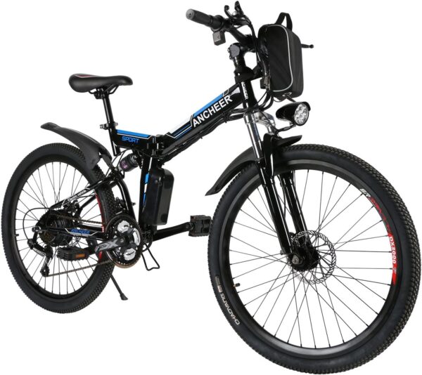 Folding bikes can be really useful with regards to storage and transportation and this one becomes really small. It has an electric battery as well which can help to get the bike up to 20mph and it can manage up to a maximum of 50mph on one full charge which takes 6-8 hours. The battery can be charged on or off the bike. It has double layer aluminium rims, a professional 21-speed transmission system, mechanical front and rear disc brakes, lightweight carbon fork and LCD display. It also has headlights and reflectors to help make night riding safe.